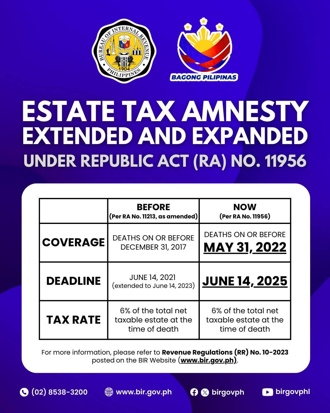 The Philippine Bureau of Internal Revenue (BIR) confirms that you do not need an Extrajudicial Settlement of Estate (EJS) or court order before paying the tax. Simply file the Estate Tax Amnesty Return (ETAR) and pay the tax by June 14, 2025.